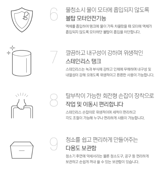 진공도 | 2400mmH2O | 정격전압 | 220V/60Hz |